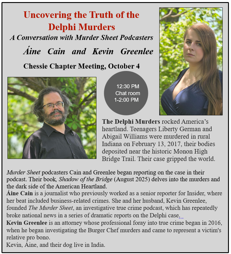 The Chesapeake Chapter usually holds a monthly meeting with a speaker on the first Saturday of each month, unless there is a holiday, venue scheduling, or convention conflict. Occasionally, the chapter offers a field trip or special event instead of a meeting. Upcoming meeting dates are listed below.  You will receive an email notice in advance of the meeting, along with a registration form and menu choice (if applicable). To reserve your place at a meeting, follow the directions as stated on the email notice or on the meeting’s announcement on this website. Guests and non-members are welcome to attend (unless otherwise noted).